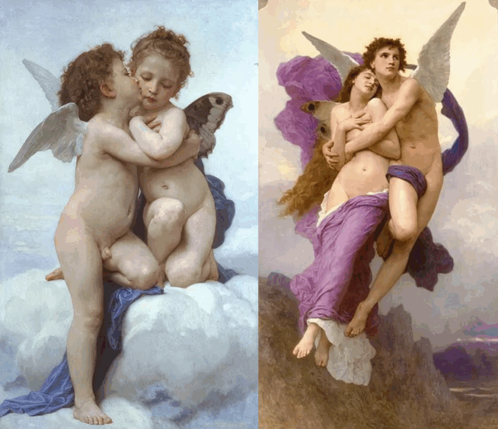 (左『アモールとプシュケー、子供たち』 右『プシュケ―をさらうアモール』 ウィリアム・ブグロー)