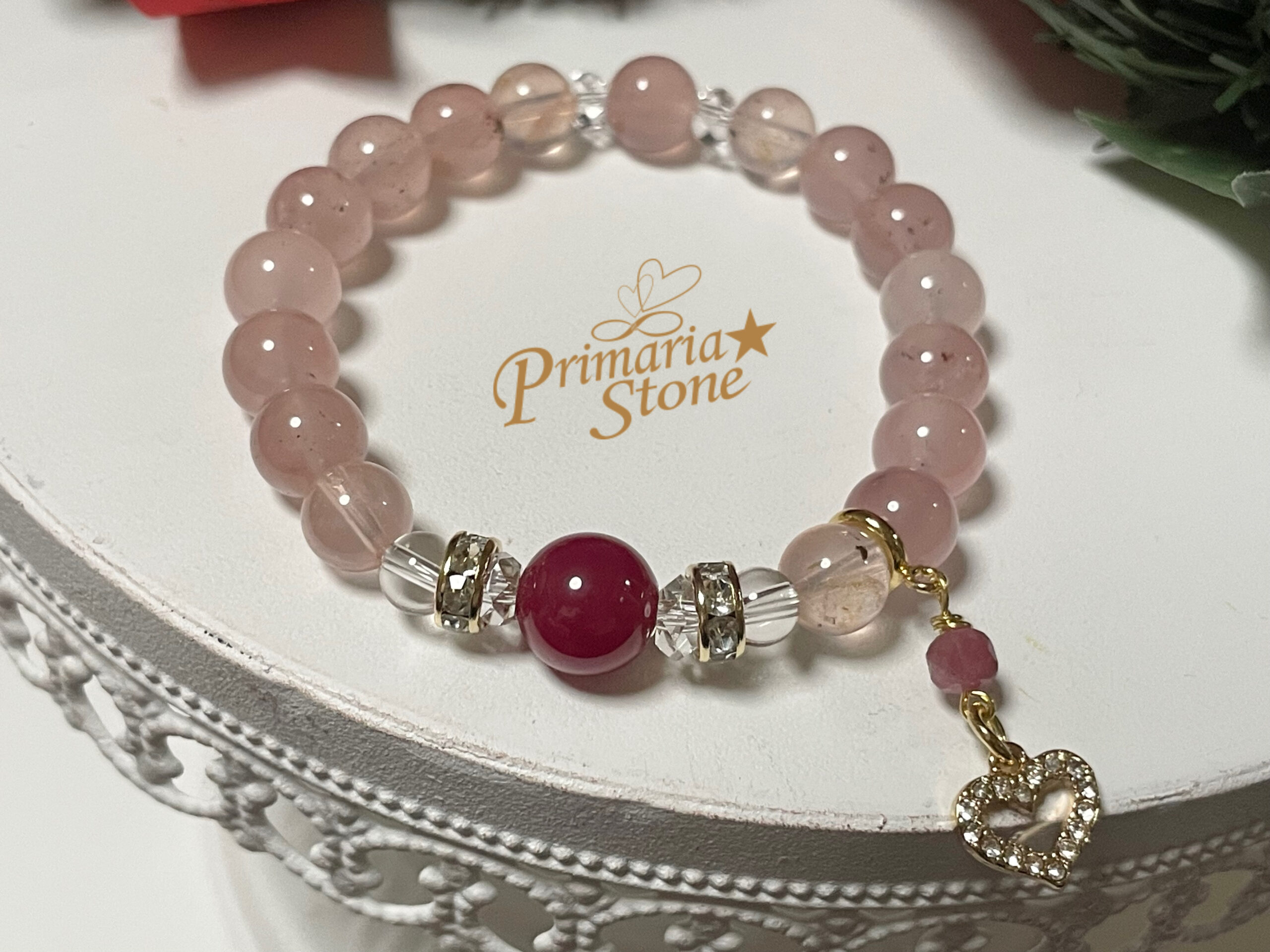 今回こちらのRubyを中心に降りてきたブレスレットは、ガネーシュ産ヒマラヤローズクオーツの配列でした。